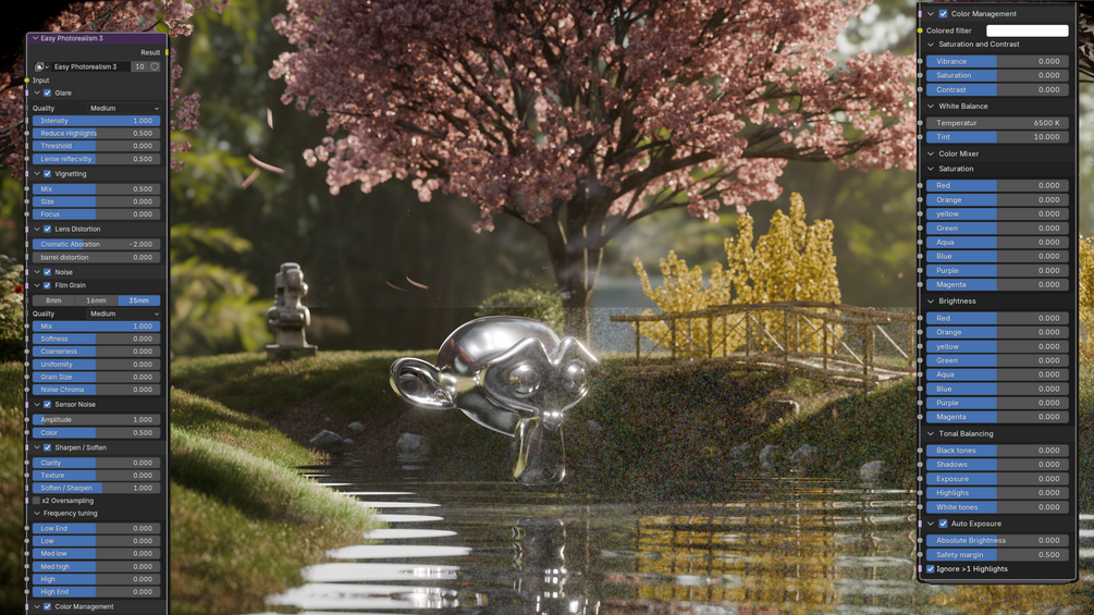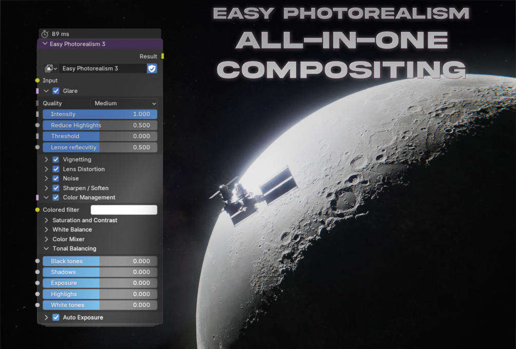 A Blender Compositor Node that tries to make it as easy as possible to post-process renders that are meant to look photorealistic.