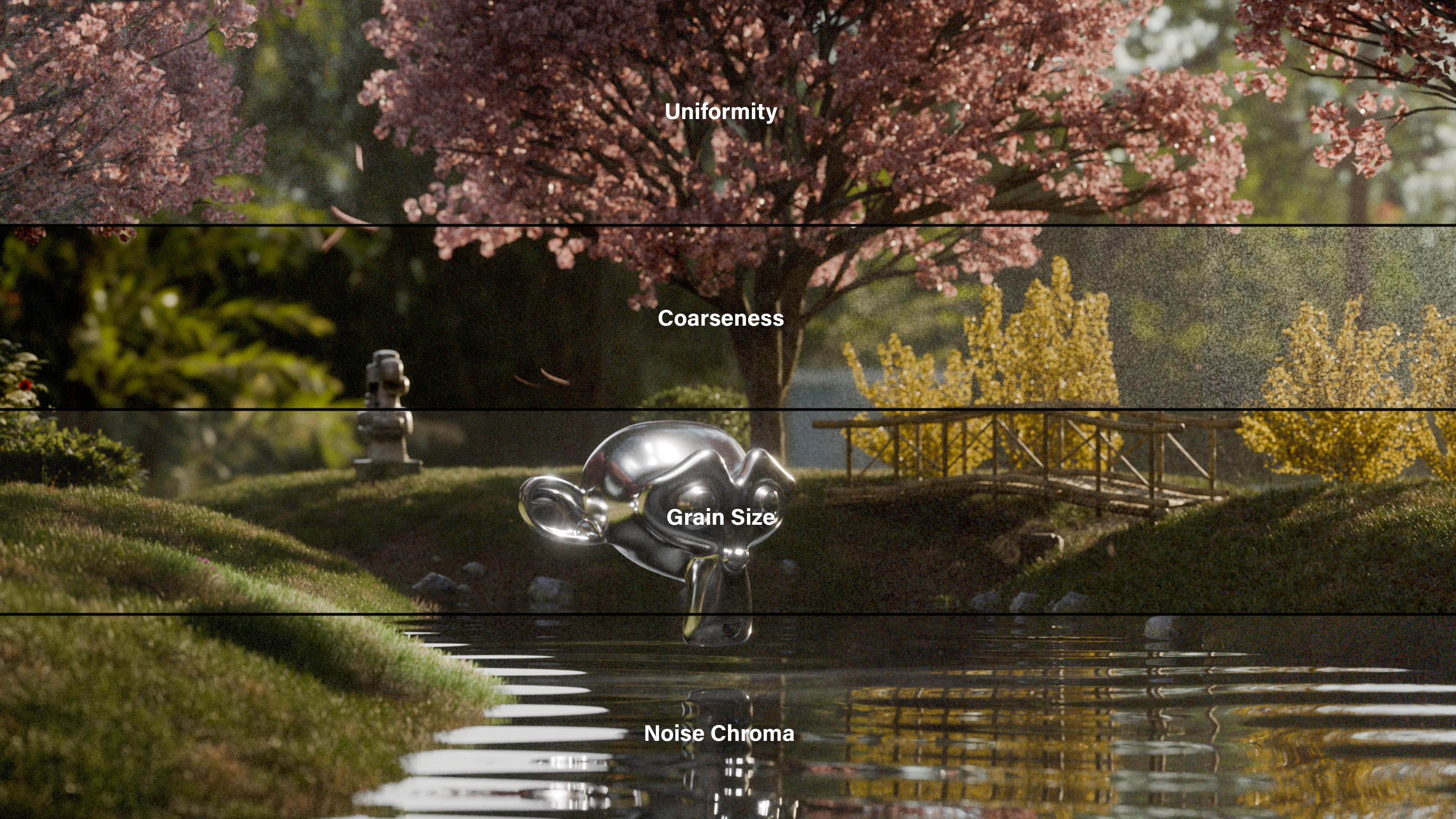 2 new noise generators including Sensor Noise and Film Grain, the latter accurately simulates grain halation and film softening. With 3 quick presets for quick deployment and 5 texture sliders for precise control.